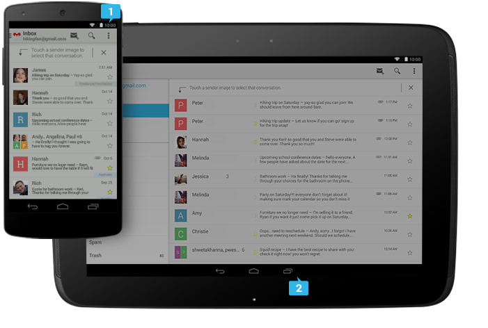 Android's system UI provides the framework on top of which you build your app, whether you're designing for phones, tablets, watches, or other form factors. Aspects of UI that are especially important for phones and tablets include the Home screen experience, global device navigation, and notifications.