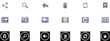 Platforms typically provide sets of icons for common functionality, such as sharing, creating a new document or deleting.
