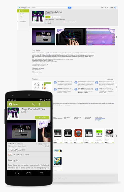 When you publish, Google Play adds your app’s ratings, reviews, links to your other products, and more. It also makes sure your store listing page looks great on phones, tablets, and in a web browser.