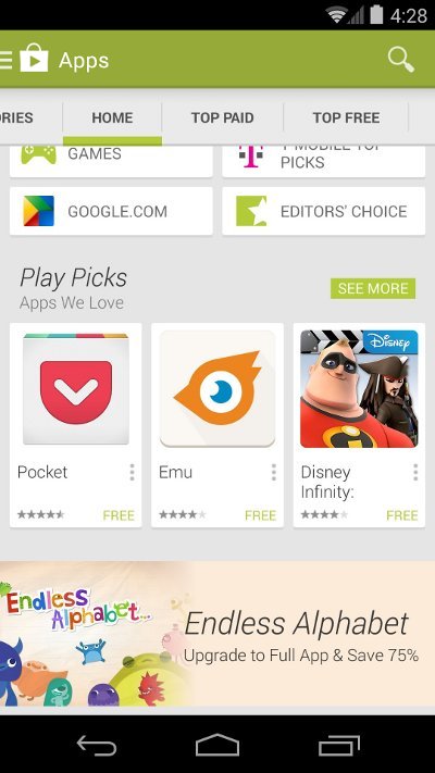 The Featured collections highlight the latest and greatest app and game titles available for Android. The list also includes the best and most popular apps in the top categories are also featured. Staff Picks collects all recently featured apps and games on Google Play. To focus on tablet users, A special Staff Picks collection highlights the best apps for Android tablets.