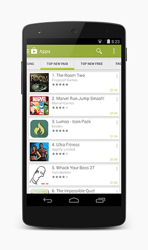 Google Play is a central part of the Android experience. New users personalize their devices with apps, games, and other Google Play content. Existing users return regularly to see what's trending and new. Downloading new apps is extremely convenient and fast— Google Play pushes apps to the user's devices instantly, over the air.