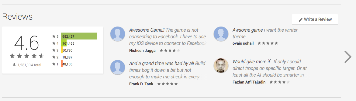Prospective users look at ratings and reviews as key benchmarks of app quality. By rating apps from one to five stars and posting reviews, Android users show their appreciation for the apps they have downloaded.