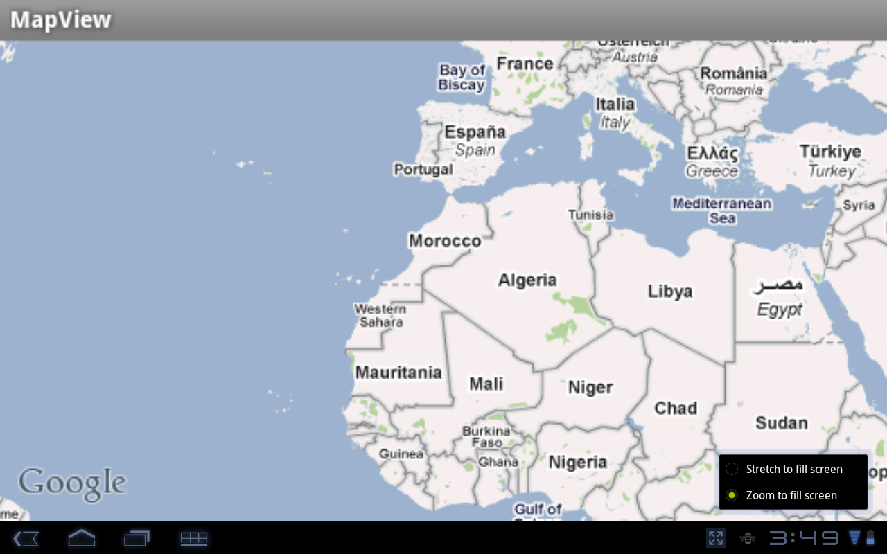 Figure 1. An application running in compatibility mode on an Android 3.2 tablet.
