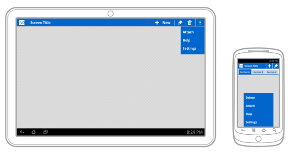 This guide provides some tips for using the action bar in ways that support both tablets and handsets. For a detailed discussion of the action bar APIs, read the Action Bar developer guide.