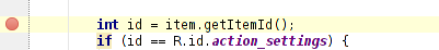Figure 5. A red dot appears next to the line when you set a breakpoint.