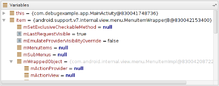 Figure 7. The Variables view in the Debug tool window.