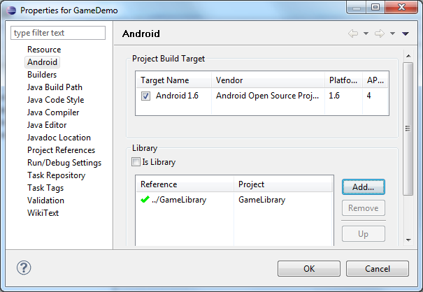 You can also convert an existing application project into a library. To do so, simply open the Properties for the project and select the is Library checkbox, as shown in the figure below.