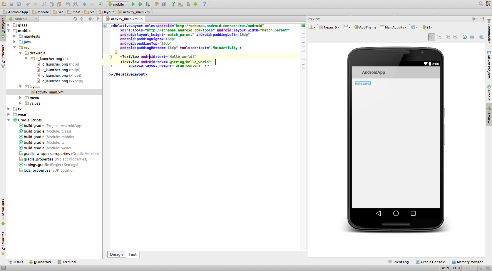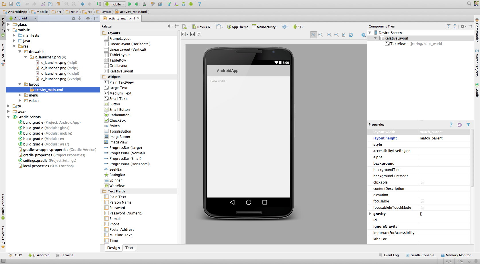 src/main and src/androidTest directories, resources, build