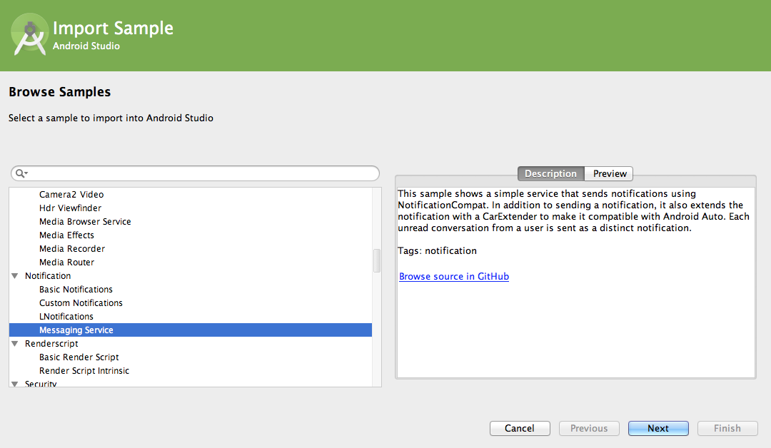 Easy access to Android code samples on GitHub