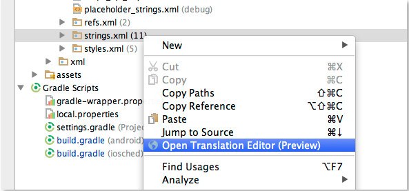 - Shows resource files from all Gradle source sets.