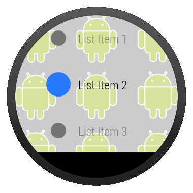 WearableListViewelement to your activity's layout definition. - Create a custom layout implementation for your list items.