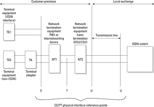 The ITU-TSS has defined two ISDN user interface standards (shown in Figure 1):