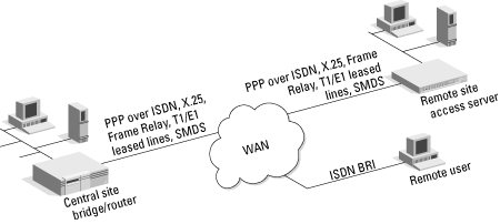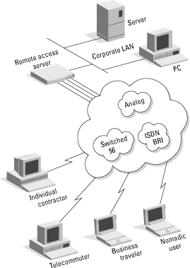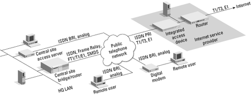 • Remote users working from home or on the road can use high-speed ISDN to access critical central site resources at higher performance levels.