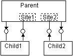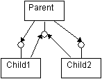 It is important to bear in mind that the aggregated objects each share the identity (and reference count) of their outer object, so passing an interface between them will immediately generate a reference cycle. A reasonable solution to this is again to use a split identity in the outer object, so that inner objects see interfaces on an identity other than the outer one. If inner objects need to use interfaces from one another, the simplest solution is to delegate those interfaces on the weak identity. The delegator uses a cached interface pointer to one of the other inner objects.