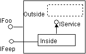 How then can an aggregated object obtain services from its outer object? The short answer is that an object should not use the fact that it is aggregated to obtain services that it would not otherwise have. It is up to the outer object to provide such services using an object with an identity different than its own. This is another case where split identities are useful. The inner object is aggregated with the strong identity of the outside object, but gets its service connection from the weak identity.