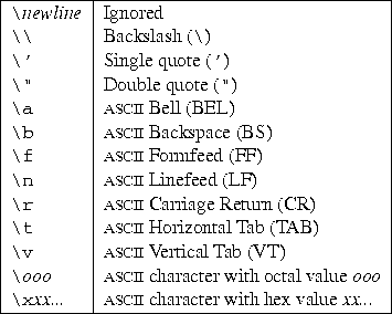 Escape sequences in strings are interpreted according to rules similar to those used by Standard C. The recognized escape sequences are: