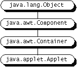 Every applet is implemented by creating a subclass of the Applet class. The following figure shows the inheritance hierarchy of the Applet class. This hierarchy determines much of what an applet can do and how, as you'll see on the next few pages.