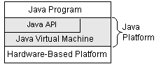The following figure depicts a Java program, such as an application or applet, that's running on the Java platform. As the figure shows, the Java API and Virtual Machine insulates the Java program from hardware dependencies.