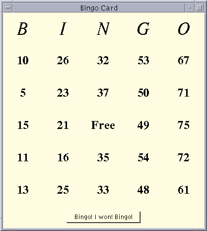 But wait! Don't push the I Won! BINGO I Won! button too often. If you "cry wolf" (push the I Won! BINGO I Won! button and don't have a winning card) three times, you're kicked out of the game. After all, that's very disruptive to the other players!