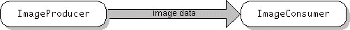 The figure above shows how image data is created, behind the scenes. An image producer -- an object that adheres to the ImageProducer(in the Creating a User Interface trail)interface -- produces the raw data for an Image object. The image producer provides this data to an image consumer -- an object that adheres to the ImageConsumer(in the Creating a User Interface trail)interface. Unless you need to manipulate or create custom images, you don't usually need to know about image producers and consumers. The AWT automatically uses image producers and consumers behind the scenes.
