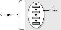 All programmers are familiar with writing sequential programs. You've probably written a program that displays "Hello World!" or sorts a list of names or computes a list of prime numbers. These are sequential programs. That is, each has a beginning, an execution sequence, and an end. At any given time during the runtime of the program, there is a single point of execution.A thread is similar to the sequential programs described previously. A single thread also has a beginning, a sequence, and an end and at any given time during the runtime of the thread, there is a single point of execution. However, a thread itself is not a program; it cannot run on its own. Rather, it runs within a program. The following figure shows this relationship.