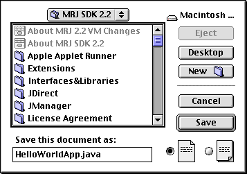 • Specify the folder where you'll save your file. In this example, the folder is MRJ SDK 2.2