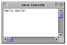HelloWorldApp is an example of a Java application, a standalone program. Now you will create a Java applet called HelloWorld, which also displays the greeting "Hello world!". Unlike HelloWorldApp, however, the applet runs in a Java-enabled Web browser such as HotJava, Netscape Navigator, or Microsoft Internet Explorer.