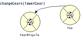A single object alone is generally not very useful. Instead, an object usually appears as a component of a larger program or application that contains many other objects. Through the interaction of these objects, programmers achieve higher-order functionality and more complex behavior. Your bicycle hanging from a hook in the garage is just a bunch of titanium alloy and rubber; by itself, the bicycle is incapable of any activity. The bicycle is useful only when another object (you) interacts with it (pedal).Software objects interact and communicate with each other by sending messages to each other. When object A wants object B to perform one of B's methods, object A sends a message to object B