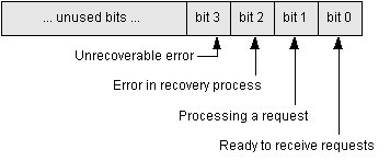 Include in the program a variable named status, and have the program print the meaning ofstatus. For example, ifstatusis 1 (only bit 0 is set) the program should print something like this:Ready to receive requests