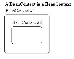 BeanContextinterface. In its most basic form, aBeanContextis used to logically group a set of related java beans, bean contexts, or arbitrary objects. JavaBeans nested into aBeanContextare known as "child" beans. Once nested, a child bean can query itsBeanContextfor various membership information, as illustrated in the following examples.Here are some possible